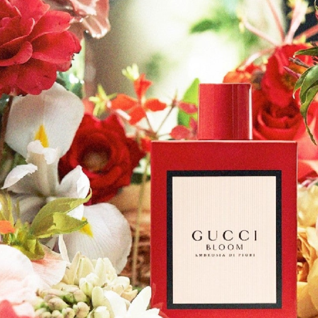 Gucci Bloom Ambrosia di Fiori by Gucci is a Amber Floral fragrance for women. The scent is presented in a burgundy lacquered glass bottle with a soft pink label. Contrasted by the emblematic Herbarium pattern in black, the same shade of pink defines the box.